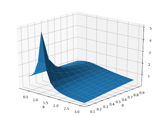 module. Numpy as all of the math functions built in but they work on numpy arrays far better. We can calculate nu at all of our b, d values with the aid of a meshgrid.